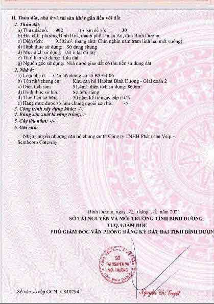 PHÁP LÝ DỰ ÁN HABITAT BÌNH DƯƠNG ĐÃ HOÀN THIỆN